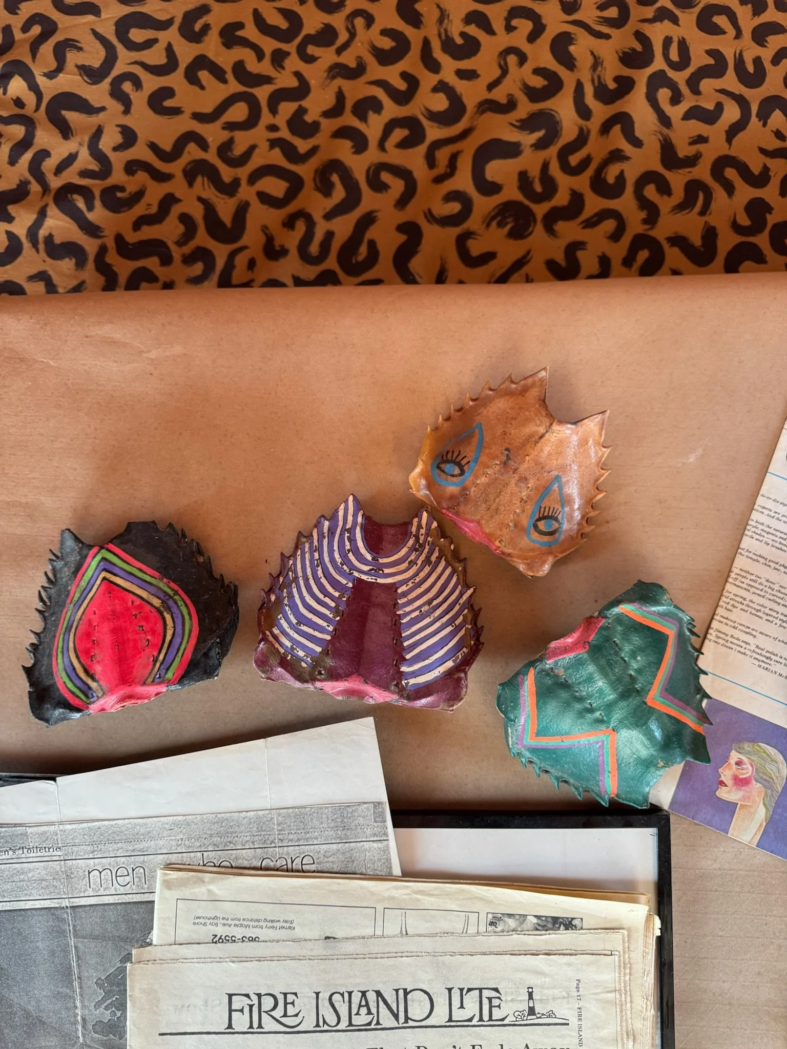 Built-in with custom leopard print pattern inspired by an old Paul McGregor logo, silk chandelier & abstract painting