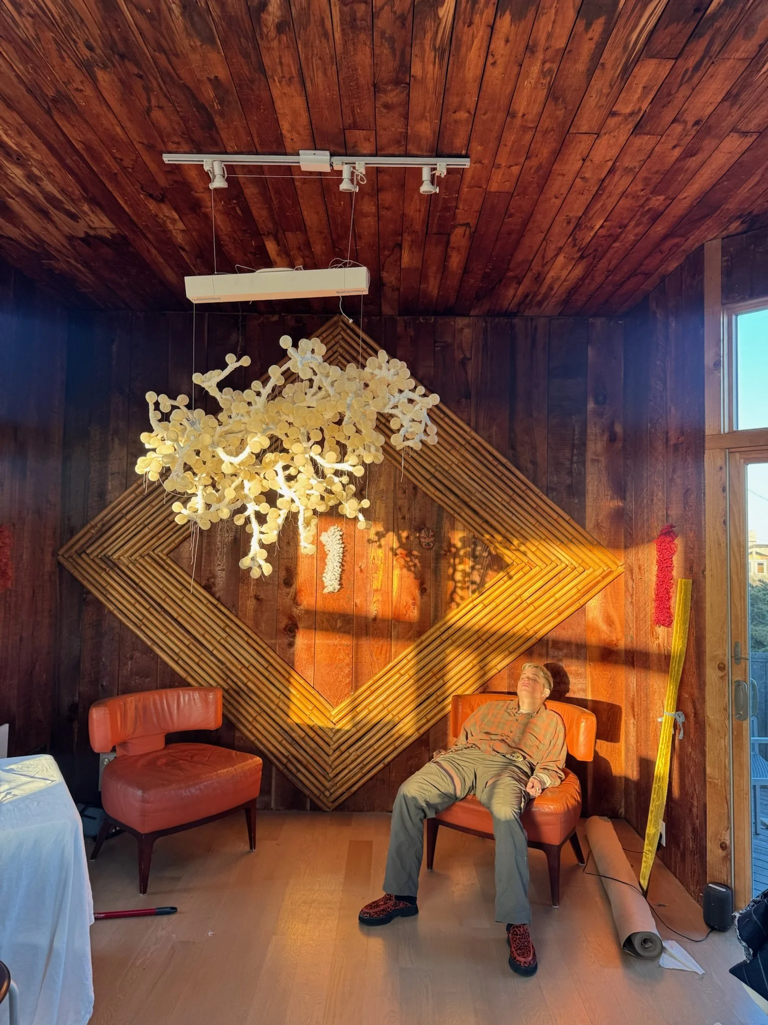We each put our lives on pause to move into the Bamboo House for a two month residency. We went room by room creating art, furniture and decor to bring my grandfather’s eclectic style back into the space. At moments it felt like we were collaborating directly with him. Most of my grandfather’s work was created from found objects around the island. In this same spirit, we didn’t buy anything new—sourcing everything second hand, upcycling what was already in the house and even finding items around the island. Our motto was ‘The house is the canvas’ with no material or idea being off limits.